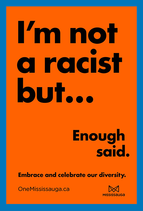 This public education initiative challenges residents to stop, look and think about different forms of racism, discrimination and hatred experienced by members of our community using bold messaging. It was developed and designed in partnership with the City’s Combating Racism, Discrimination and Hatred Advisory Committee (CRDHAC), who noted the City must go beyond tolerance with this initiative and strive for unity – as we are ‘One Mississauga.’